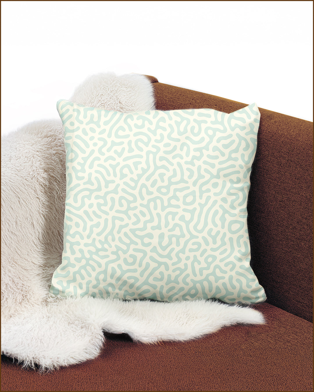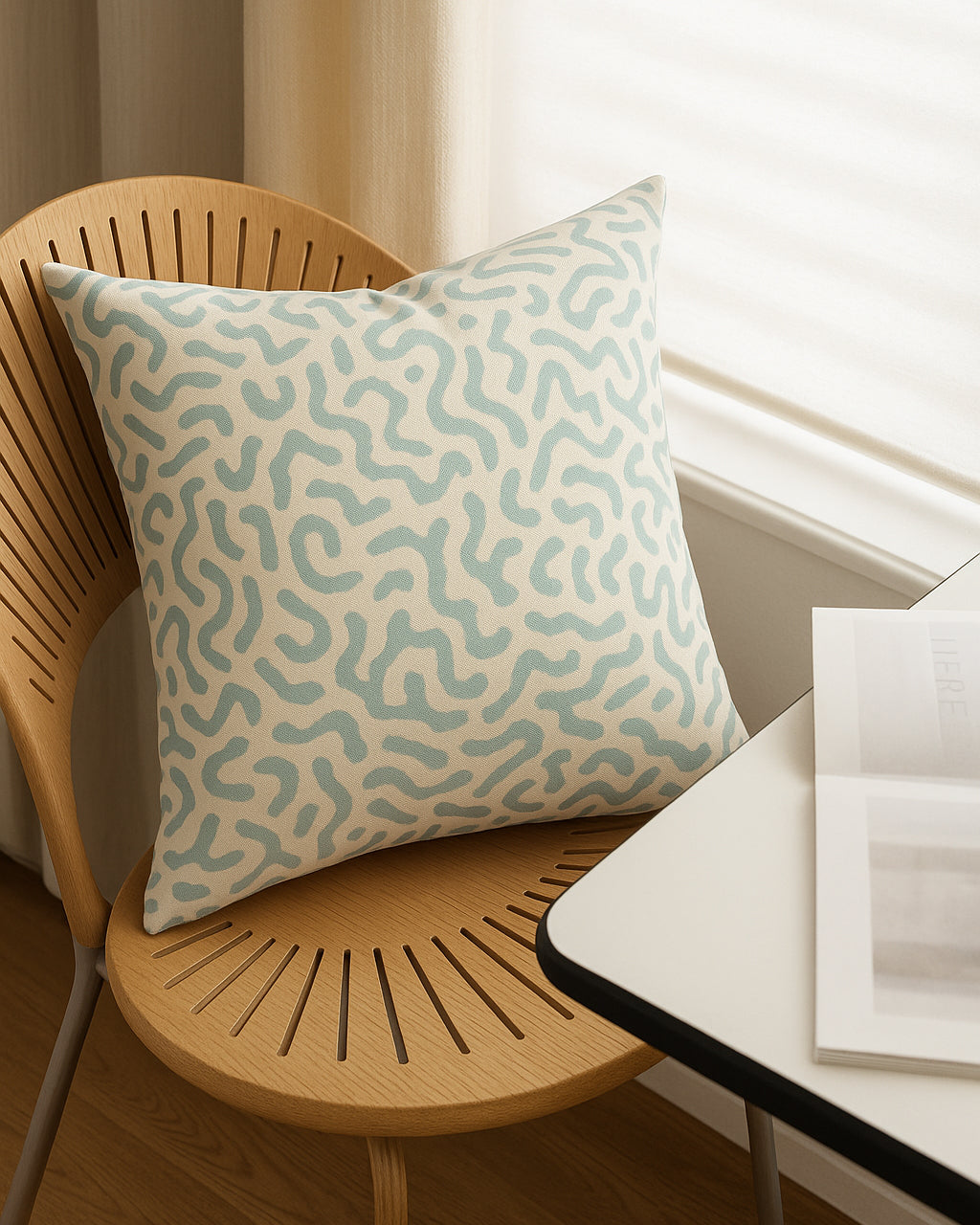 Un acolchado suave y esponjoso envuelto en un laberinto de líneas azul cielo: una combinación poética de comodidad y arte para su santuario cotidiano.